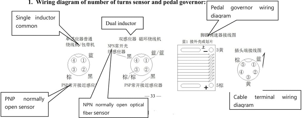1. Wiring diagram of number of turns sensor and pedal governor: