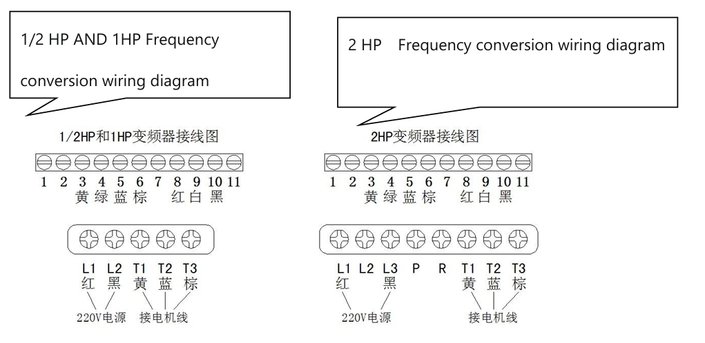 3. Frequency converter wiring diagram: (The head and the wiring of the two frequency converters are consistent)