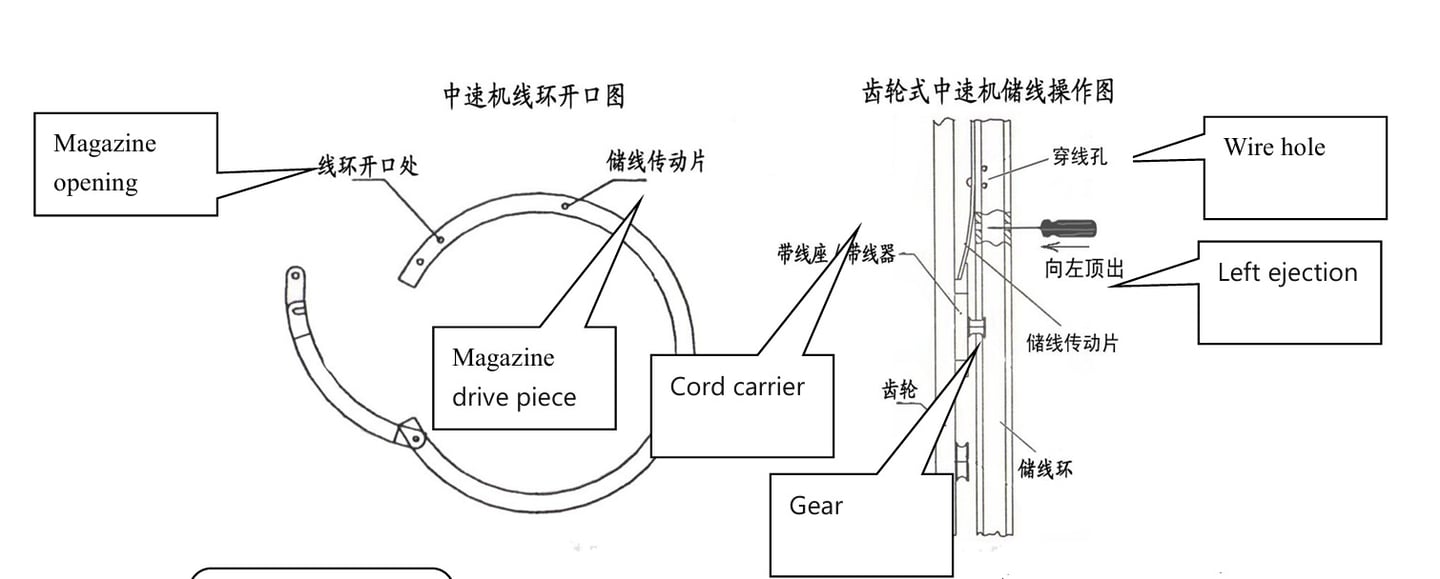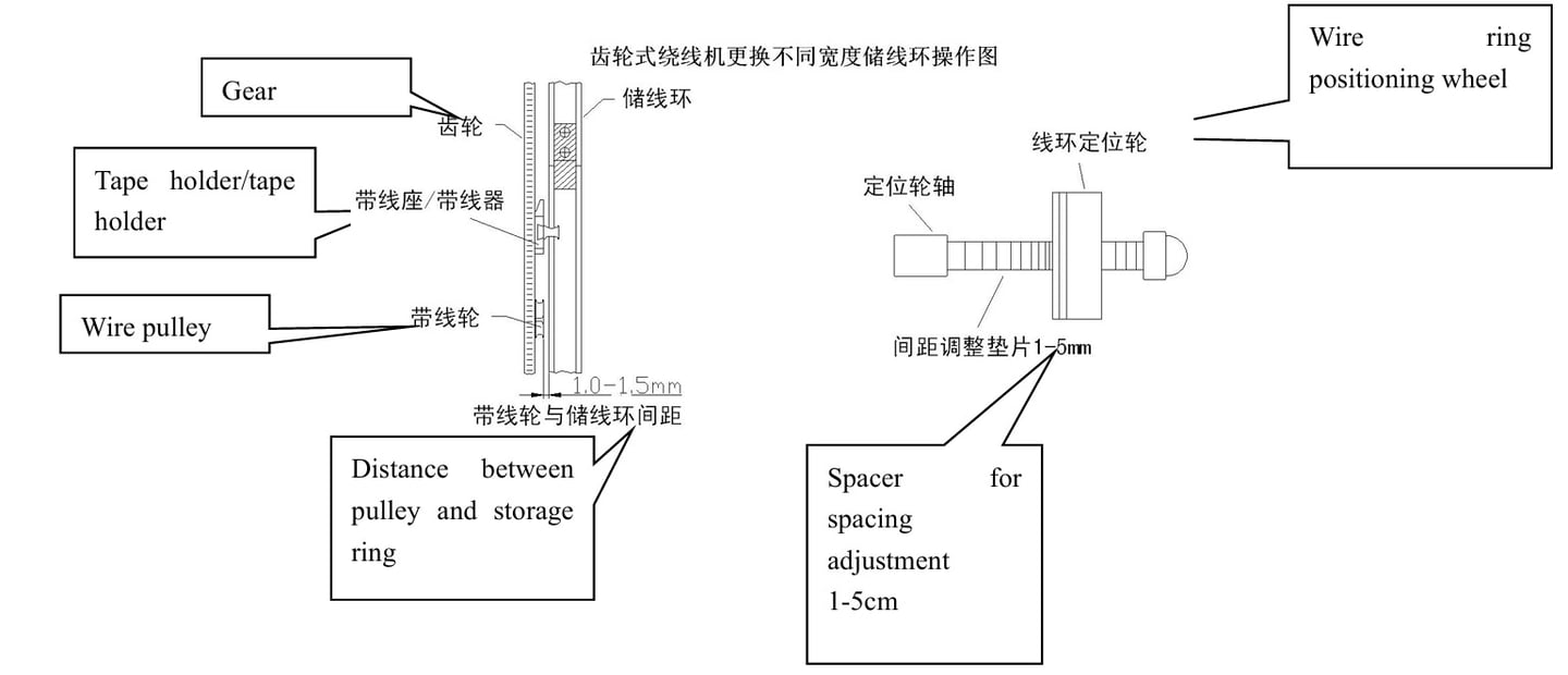 Spread head adjustment----- Manually adjust the stop position of the head tooth ring or cable magazine/tape ring.